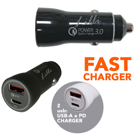 LILLI CARICATORE PER AUTO NERO 2 PRESE USB (A+C) VELOCE – CONFEZIONE DA 5 PZ